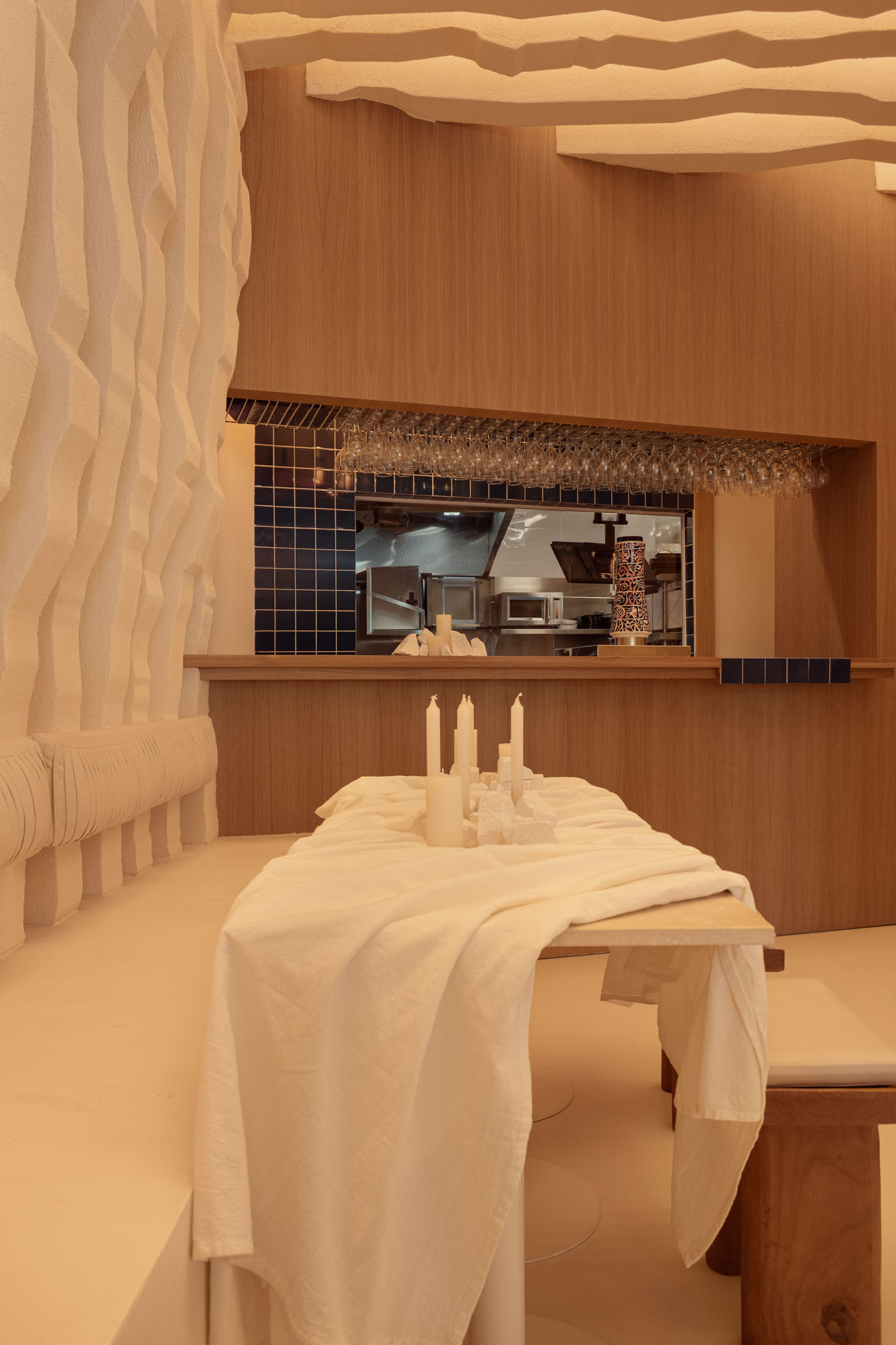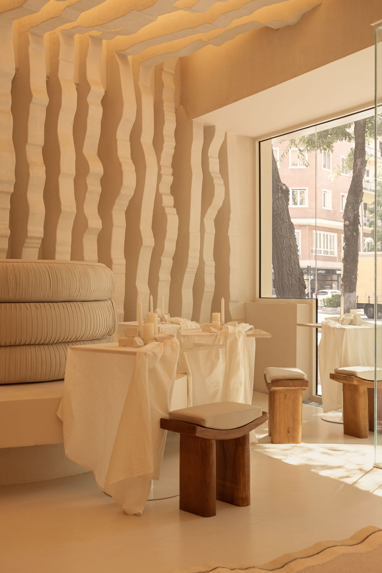 For this new stage in Madrid, Masquespacio has conceived a space that transcends the freshness and vibrant energy of their first design. The studio has sought an aesthetic maturity and a profound reflection on Egeo’s more than ten-year trajectory in the Greek gastronomy sector.